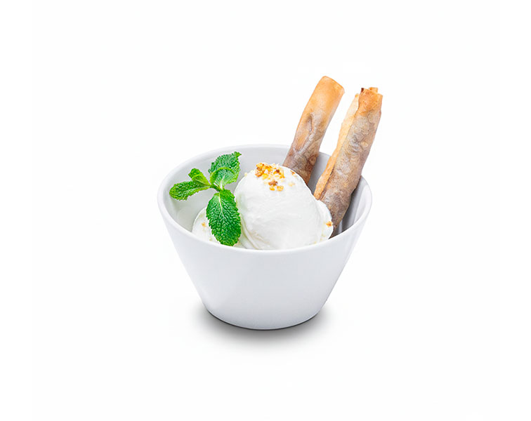 Banana & Choco Rolls, seasonal fruit and a scoop of ice cream to choose from vanilla, chocolate or coconut.
